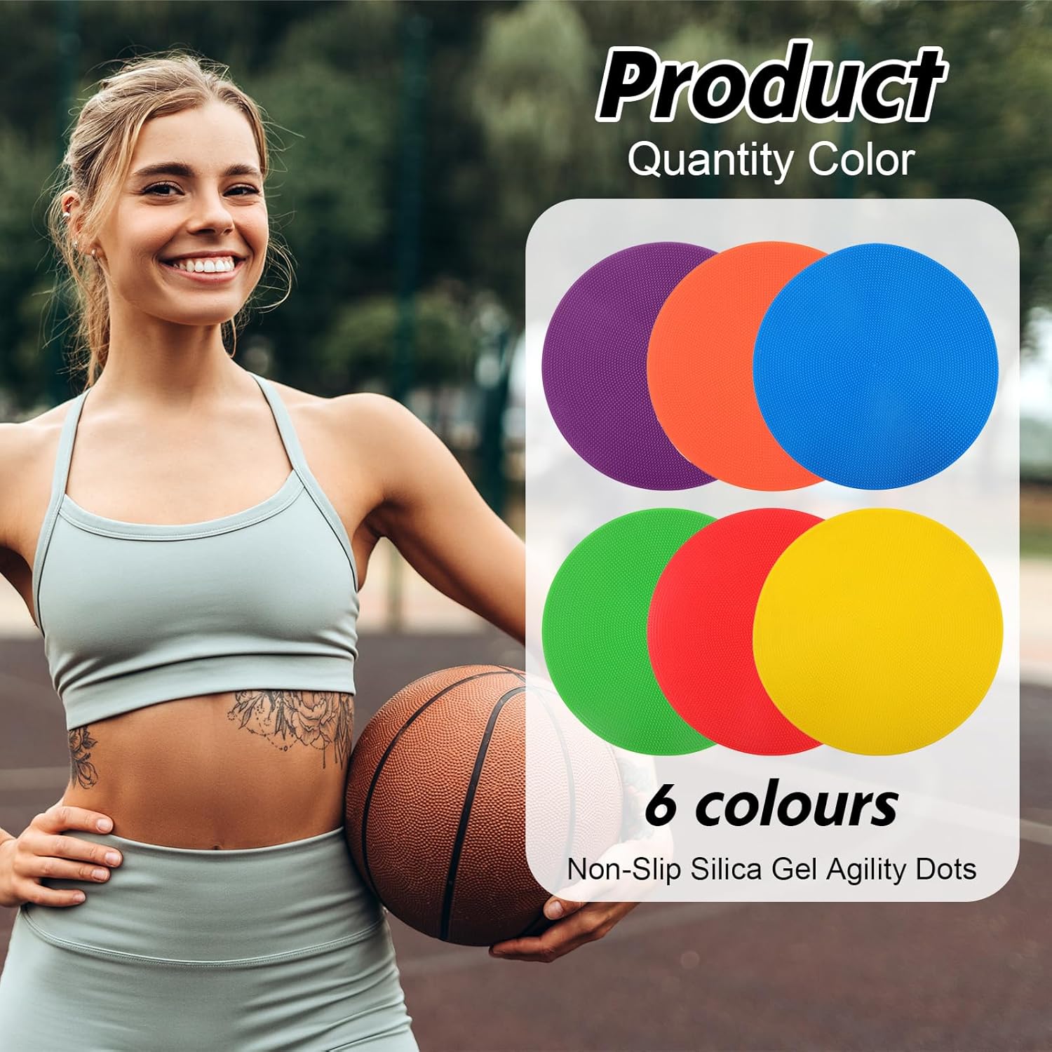 - Anti-Slip Silica Gel Process: Each agility cone has an anti-slip silica gel bottom that ensures stability on any surface and prevents sliding or movement