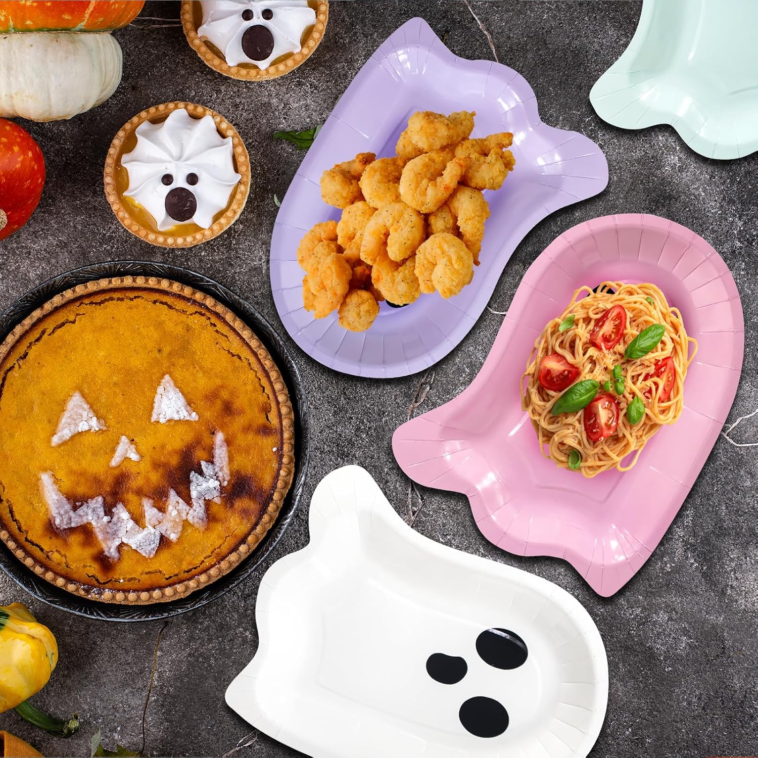 - 180 Pcs Plates and Napkins Set: This set includes 120 Halloween ghost paper plates and 60 napkins, perfect for serving up to 60 guests. From casual dinners to large celebrations, this all-in-one solution ensures a stylish, hassle-free dining experience every time