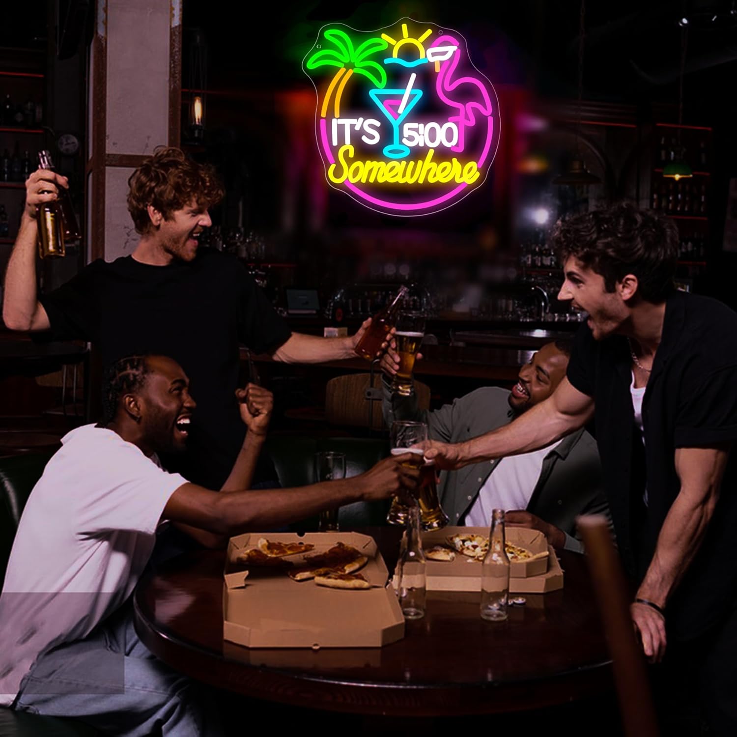 - Widely Used: The 5 o'clock somewhere neon lights are suitable for bars, nightclubs, parties, bedrooms, living room, kitchen walls,bistro, man cave, garage bars, basement, wet bar and other places to create a relaxing atmosphere, making it a prominent decorative piece in bars and events