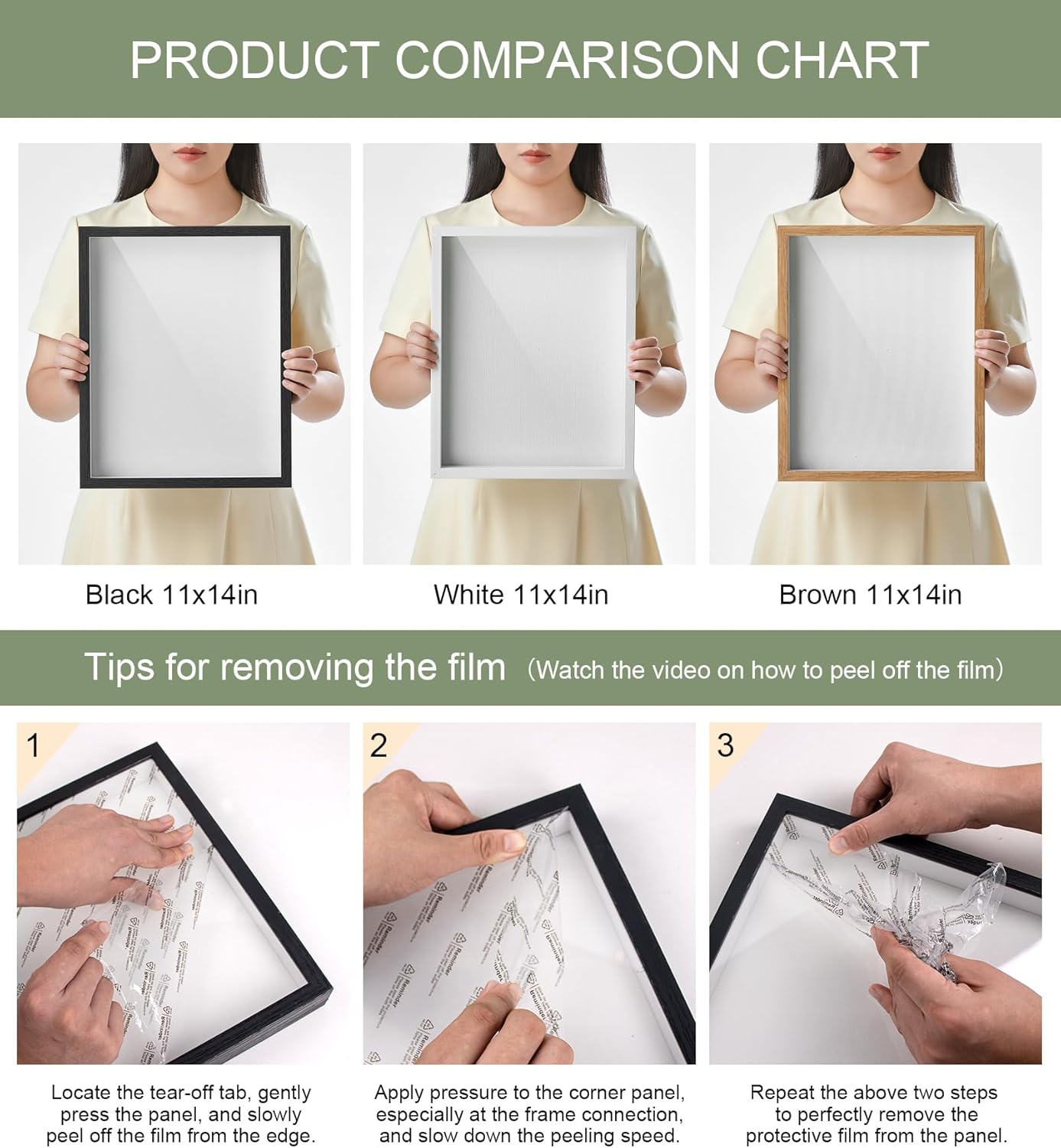 - 【Shock-Resistant Foam Packaging】We understand the importance of a perfect unboxing experience! We've upgraded your shadows box frames packaging: reinforced crush-resistant cardboard box (shockproof) + full plastic seal (dustproof) + reinforced corner protectors (impact-resistant) + dual-sided protective film on the front panel (scratch-proof). We meticulously craft our packaging to ensure you receive your shadowbox picture frame flawless and undamaged,ready to preserve every precious moment of your life. Film Removal Tip: Gently peel from a corner,pressing along the edge to avoid leaving marks and maintain its pristine appearance.