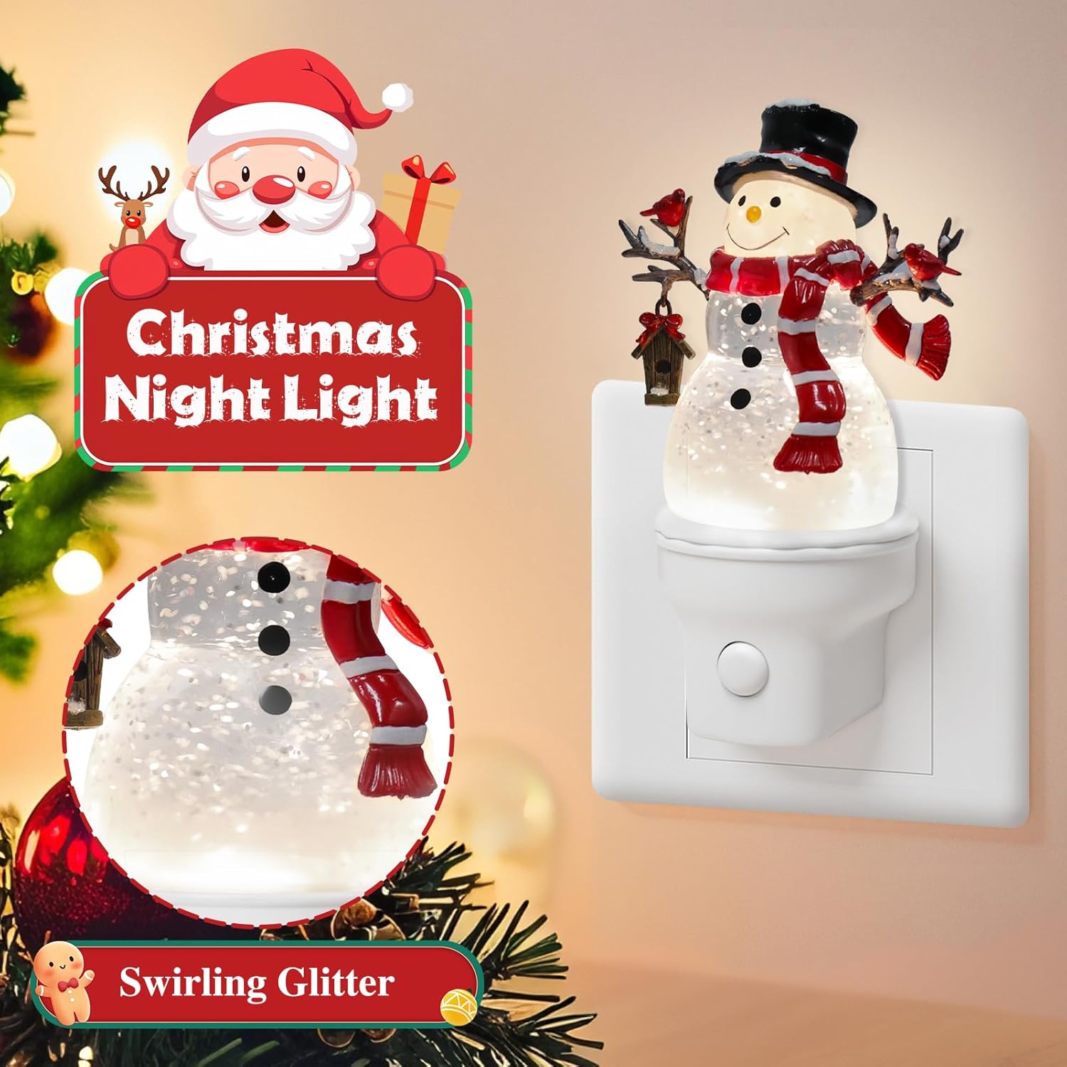 - Perfect Festive Gift for Any Occasion: Delight your loved ones with this enchanting Christmas night light! Designed with charming holiday motifs, it creates a magical ambiance with its swirling glitter effect, perfect for gifting during Christmas, birthdays, housewarmings, or just to spread cheer. The soft glow adds warmth to any space, whether it's a child's bedroom, living room, or hallway. A thoughtful, practical, and decorative present for family, friends, coworkers, or neighbors!