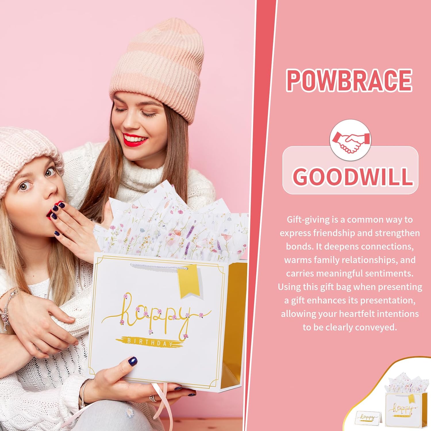 - 【White Flower Gift Bag】The bag pattern is novel, beautiful and unique. The pure white background is embellished with “Happy Birthday” hot stamped words and flower patterns, perfect for birthday parties. Whether it is for yourself, family, friends or coworkers, it is a good choice.
