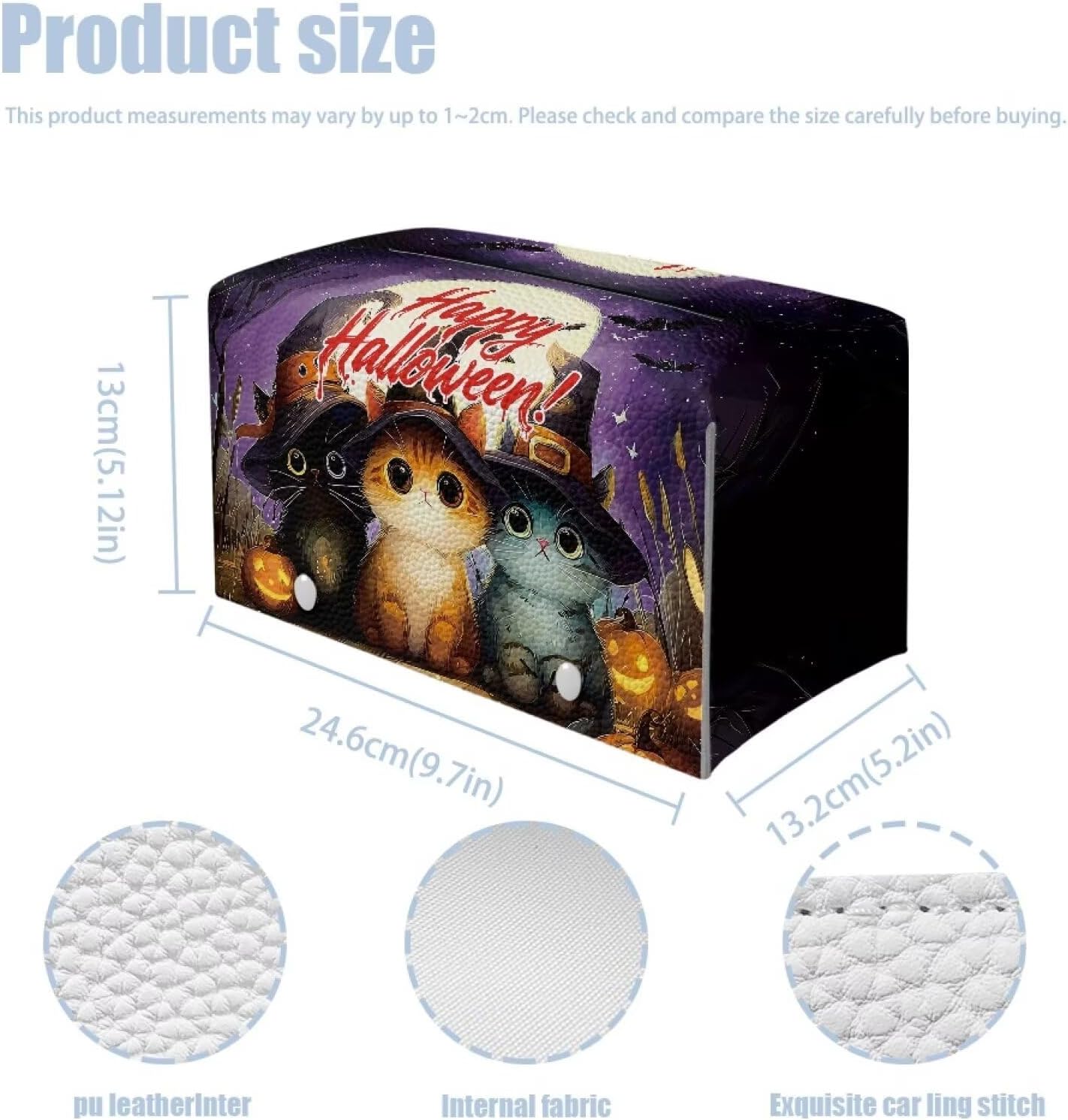 Happy Halloween Tissue Box Cover Holiday Home Decor Cute Cat Tissue Box Holder Modern Home Decor Facial Paper Organizer Holder for Office Bedroom Car Bathroom