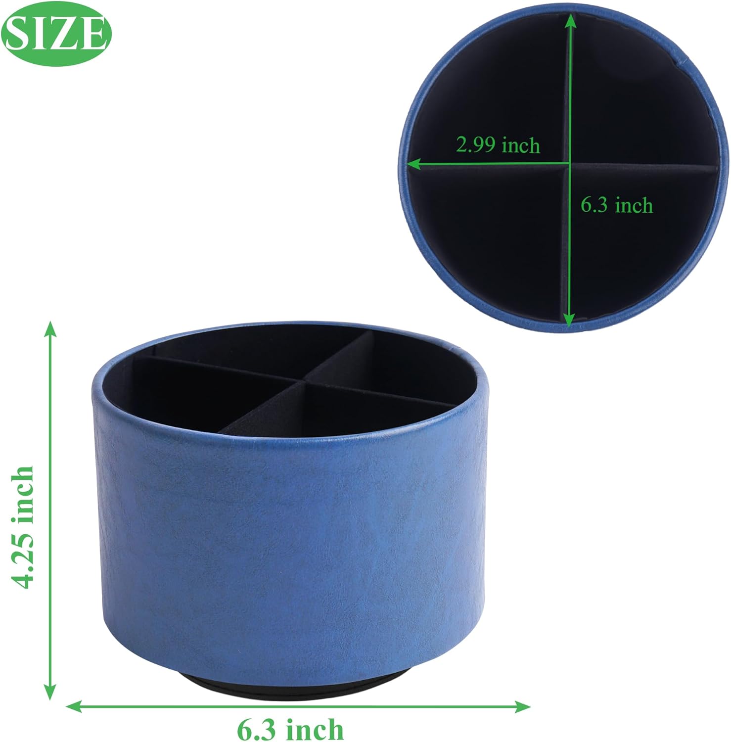 Hennaja Round Leather Art Supply Organizer,Remote Control Holder,360 Degree Spinning,Multi-Functional Pencil Holder,4 Compartments Desktop Stationary Organizer(1-Oil Blue2)