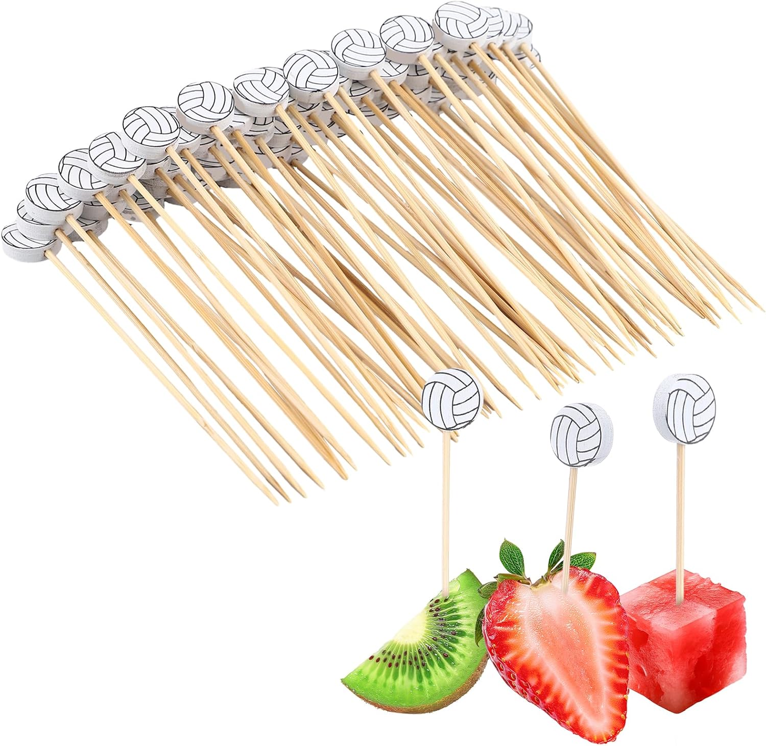 200 Pcs Volleyball Cocktail Picks 4.7" Toothpicks for Appetizer Drink Stirrer Birthday Party Decoration Cupcake Sandwich Fruit Skewer Bamboo Sticks Club Catering Event Buffet Holiday Party