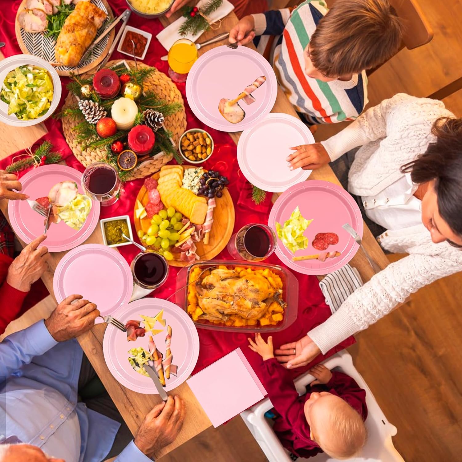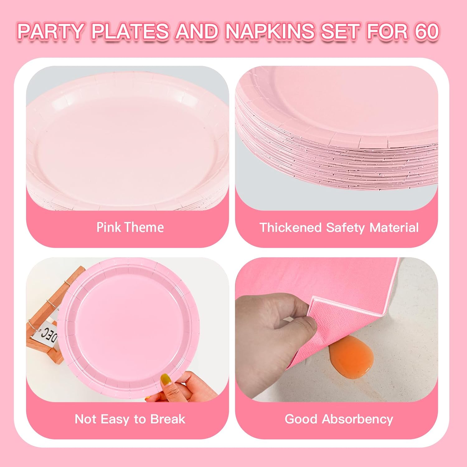 180Pcs Pink Paper Plates Party Supplies Boho Paper Plates and Napkins Serve 60 Disposable Tableware Set for Birthday Party Decorations Game Day Family School Holiday Sports Events