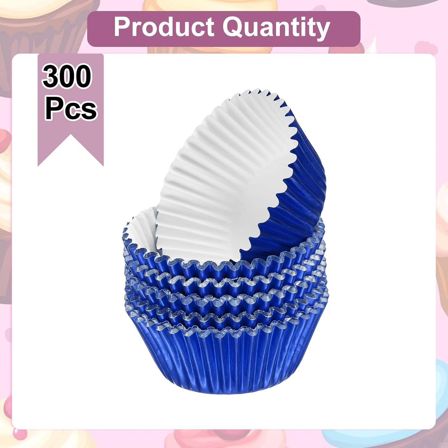 HARFINGTON 300 Count Blue Foil Muffins Cupcake Liners Standard Size Metallic Baking Cups Wrappers Greaseproof for Party Wedding Birthday
