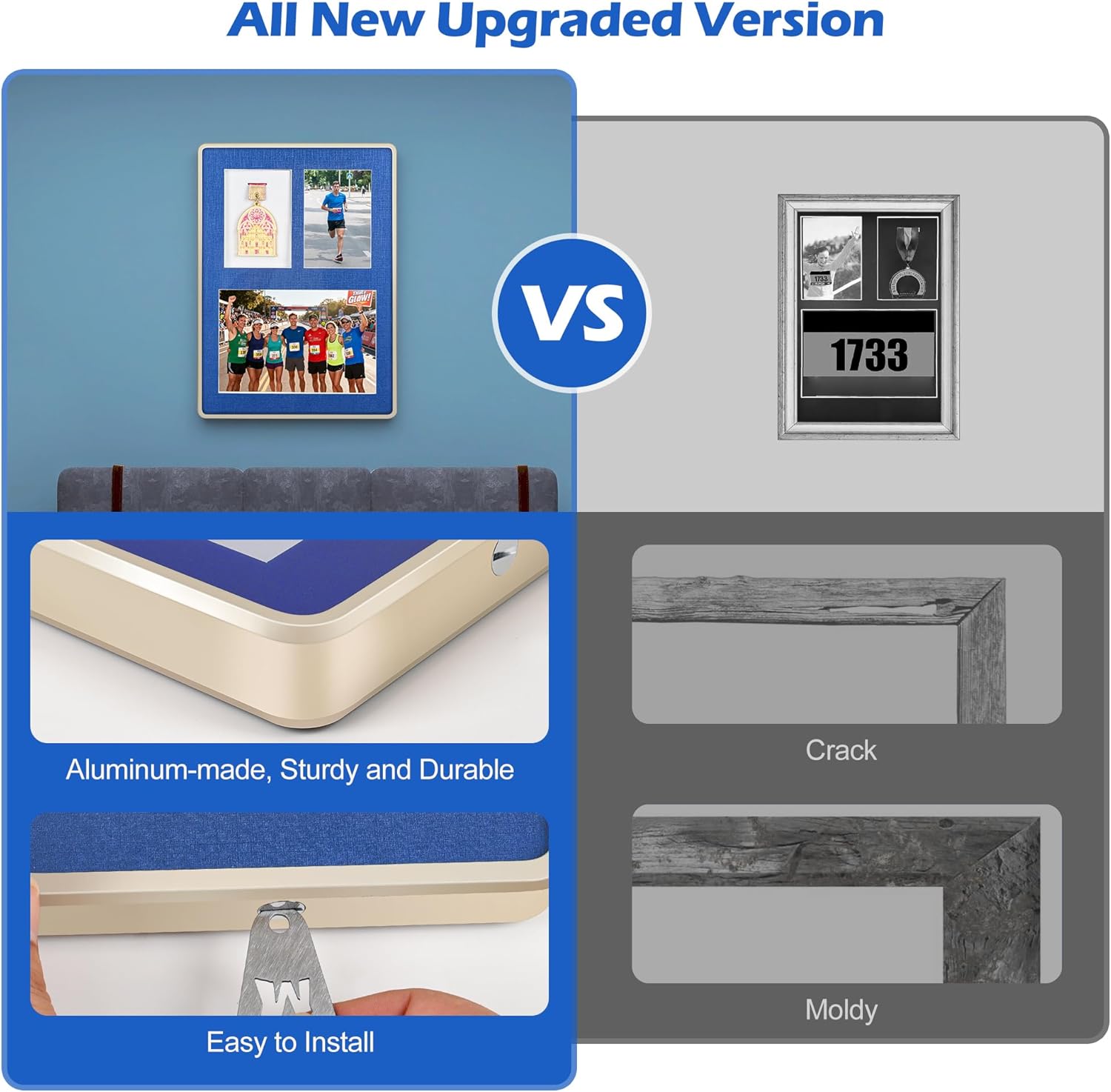 - VERSATILE DISPLAY: 3-in-1 shadow box designed to showcase medals, race bibs, and photos, perfect for preserving sports achievements and memories