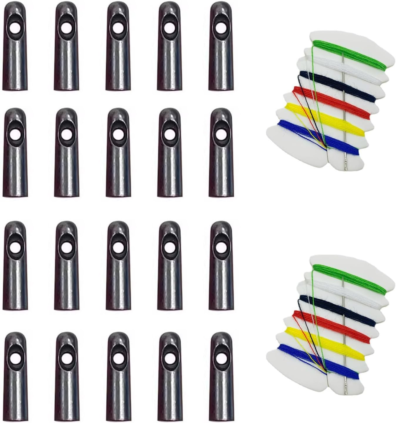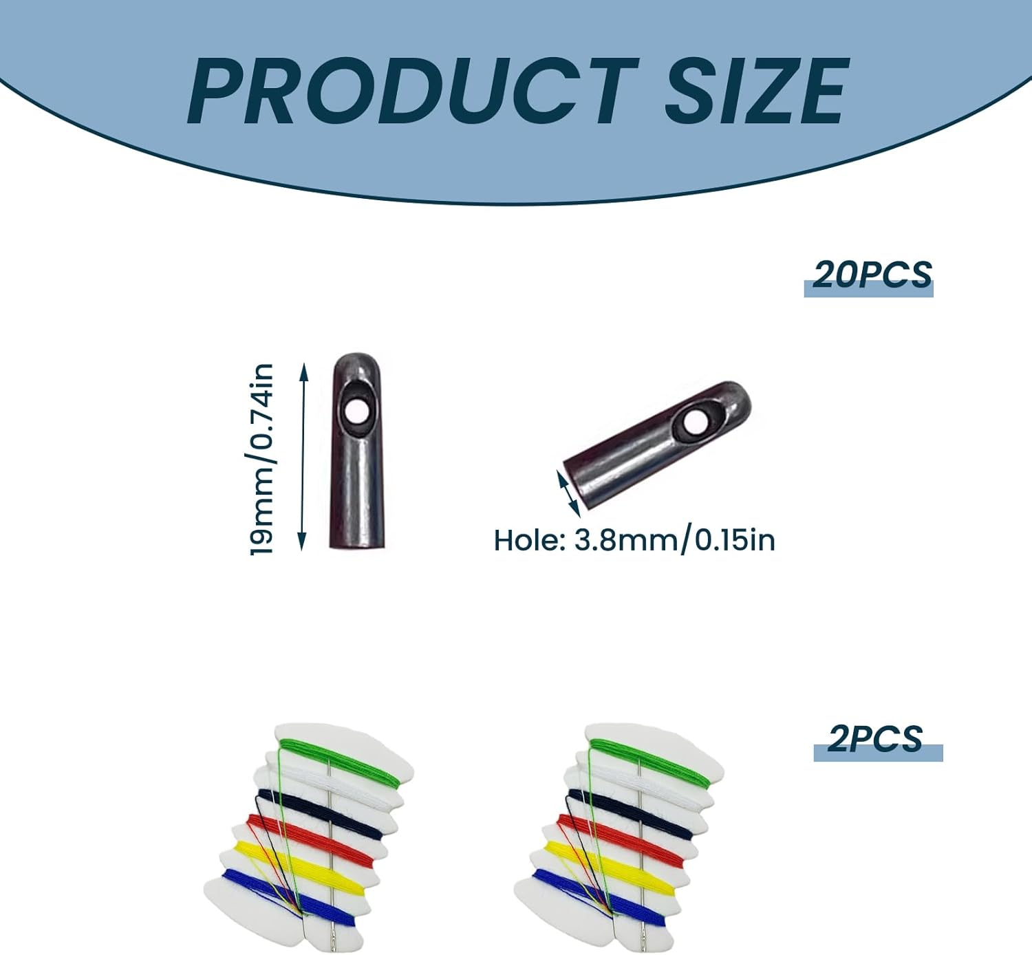 20 Pcs Umbrella Tail Replacement Beads, Umbrella Repair Kit with 2 Set Needles Threads, Metal Folding Umbrella Tips Parts for Patio Umbrellas Golf Umbrella Repairs (Hole 3.8mm)
