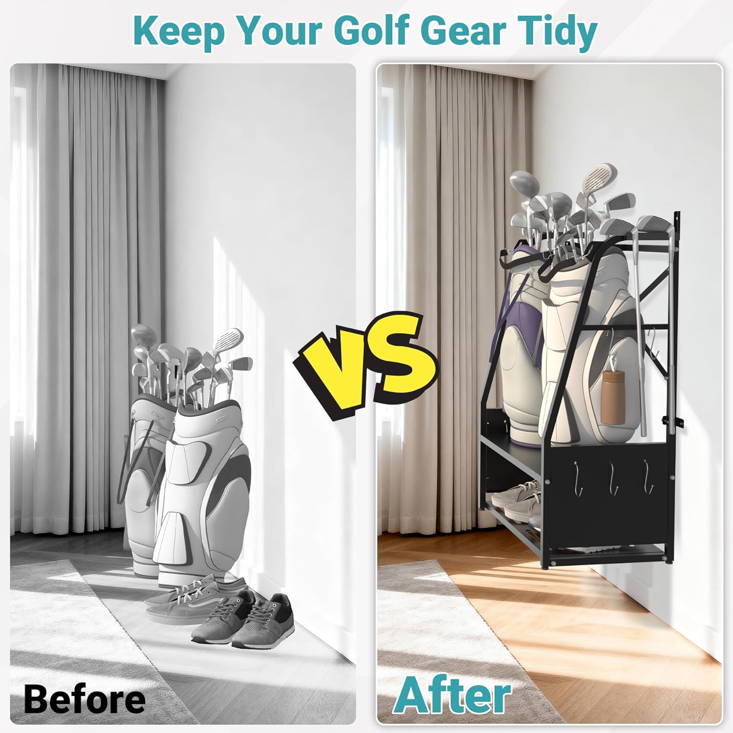 - Versatile Usage: Perfect for garages, practice rooms, living rooms, offices, gyms, or golf clubs. Suitable for storing various sports equipment beyond just golf gear