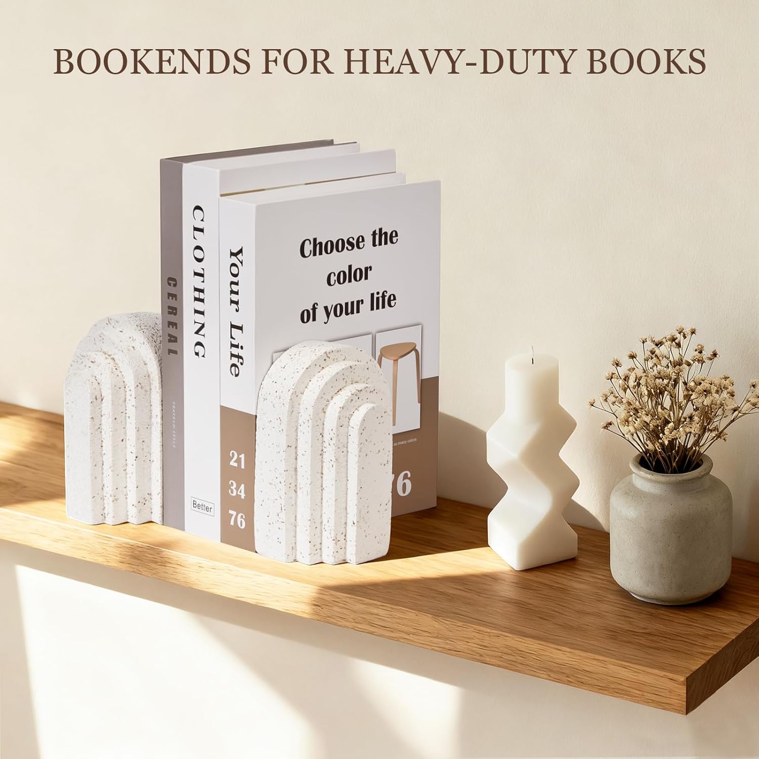 - Design: Curated with natural stone-like textures and modern layered arches (inspired by luxury home decor), these bookends blend artistry with function.