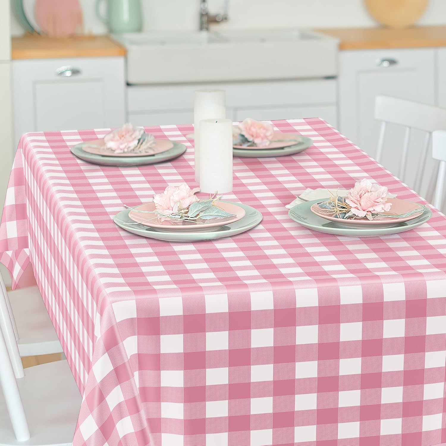 12Pack Table Cloth Rectangle Table, 54" x 108" Plastic Table Cloth Disposable, Waterproof Pink and White Checkered Table Cover for Outdoor Picnic Birthday Party Supplies Gathering BBQ Holiday Dinner