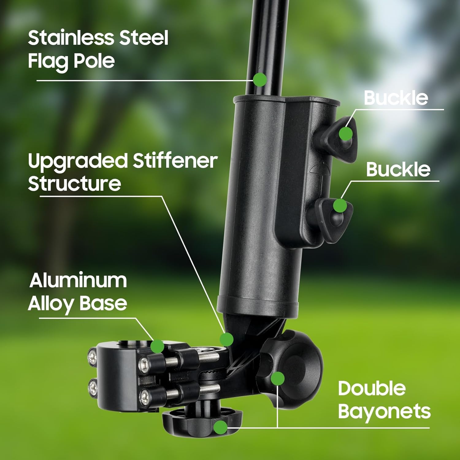- 【Stable & Secure Mount】The reinforced adjustable bracket and double-screw lock keep your flag firmly in place, ensuring it won’t wobble or slip even on rough courses.
