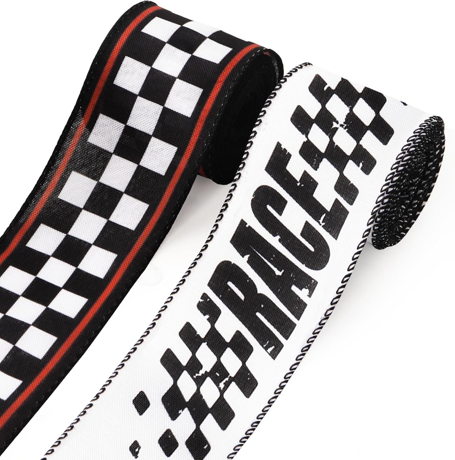 - Size: You will receive 2 rolls of Racing Car Theme Printed Ribbon. Each black and white checkered ribbon measures approximately 2.5 inches wide and 5 yards long, for a total of 10 yards. This size is sufficient for crafting, decorating, and race car party needs.