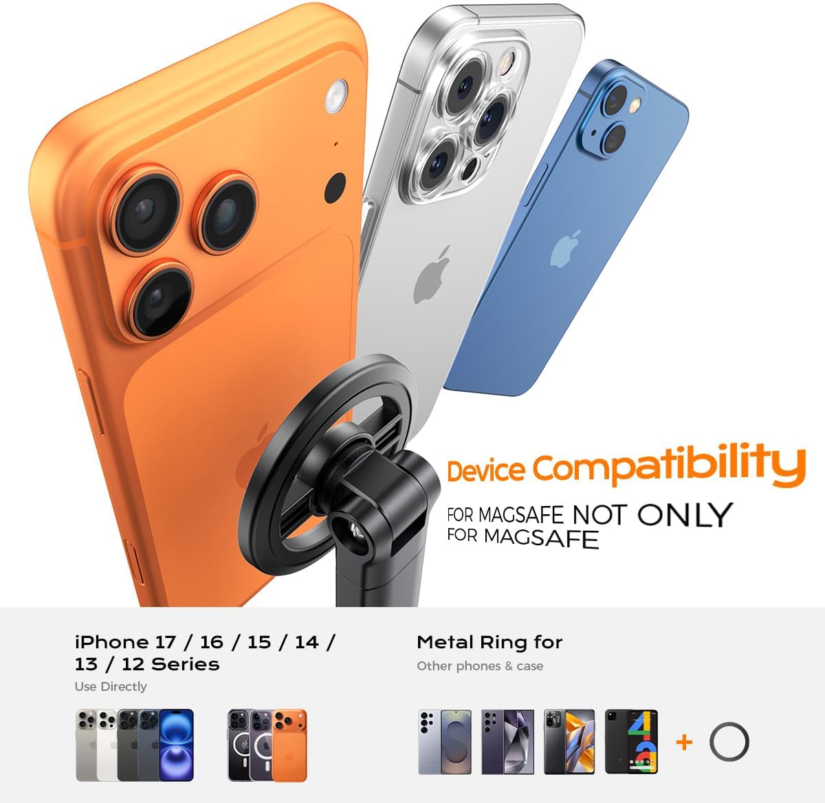 - 🤳【2025 New Upgrade &360° Magnetic Head Adjustable 】Our lightweight selfie stick has been upgraded with a magnetic head. Compared with the old version, it has achieved 360-degree and freely adjustable up and down functions. It can better meet the shooting angles and requirements.It adopts the latest magnetic adsorption method, achieving ultimate convenience of one-second adsorption and one-handed operation. There is no need to worry about the damage caused by the traditional phone holder method.