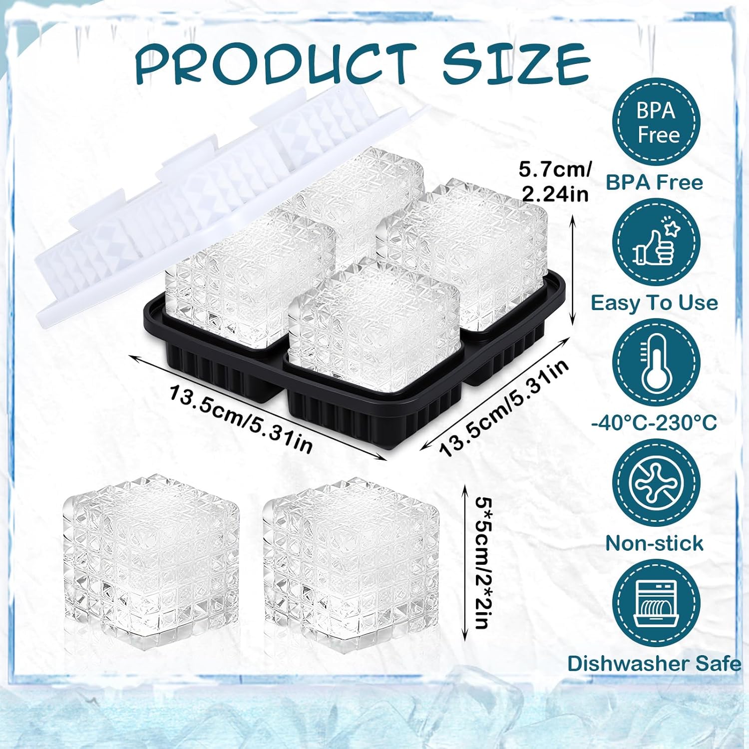 - Large 2 Inch Square Ice Cube Molds: you'll receive 2 pcs square crystal whiskey ice cube molds, each capable of creating four 2-inch big square ice cubes. Add water, soda, juice, tea, or vanilla and freeze to elevate your drinks to new heights. This square crystal whiskey ice cube tray can also be used as a making tool for chocolate, ice cream, or soap