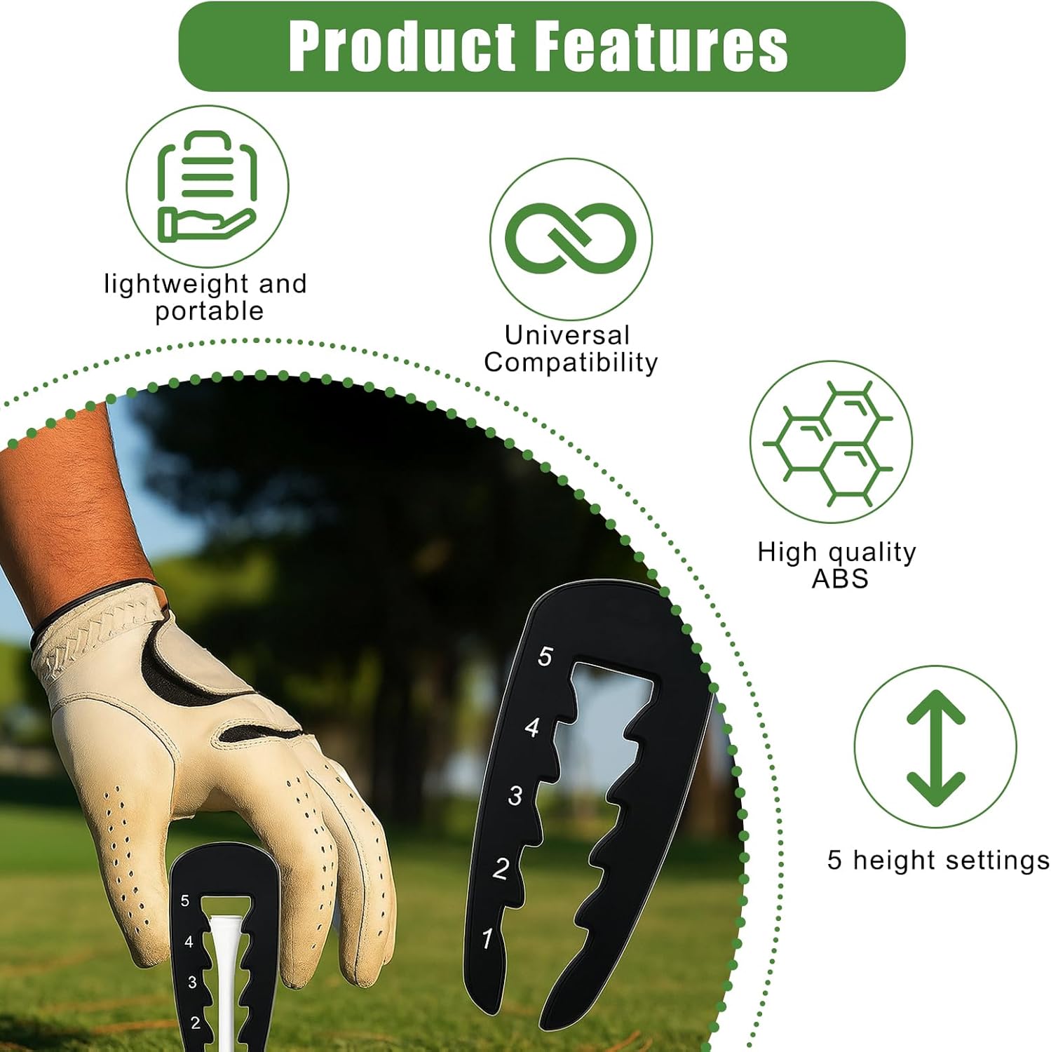 - 5-level precise adjustment: This adjustable golf tee height tool can switch between 5 different heights with just one click, covering various scenarios such as wooden clubs, long irons, and short irons, making it suitable for both professional players and amateurs