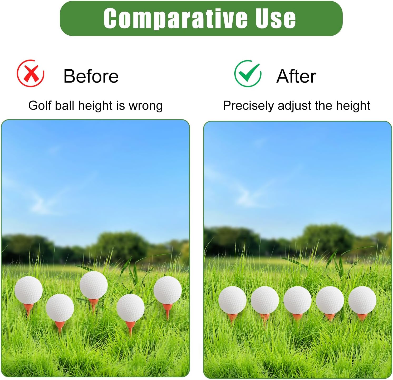 - Universal club and stand compatibility: Seamlessly compatible with all wooden/plastic stands and suitable for drivers, fairway woods, and long irons. Whether you are a professional player pursuing accuracy or a beginner building confidence, you can customize the height according to your swing style