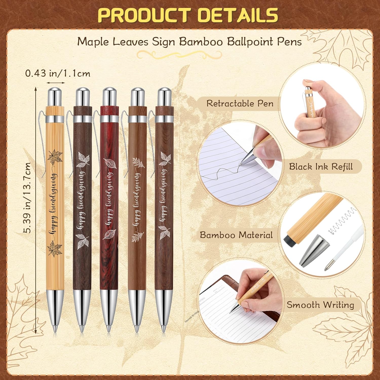 - Reliable Friendsgiving Ballpoint Pens: these friendship pens are about 5.51 inches long, made of bamboo materials for durability, equipped with black refills, they deliver a smooth and consistent writing experience without ink bleeding