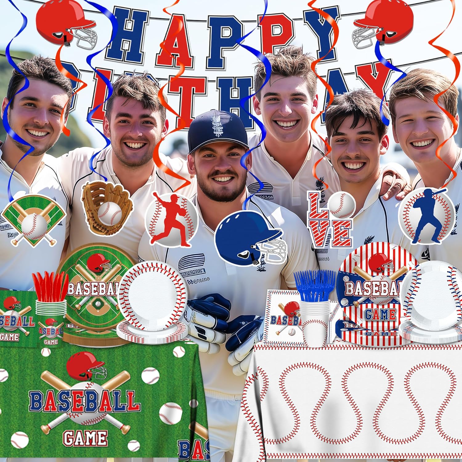 - 【Baseball Party Supplies】: This Set Includes 20Pcs 9-Inch Plates, 20Pcs 7-Inch Plates, 20Pcs 6.5-Inch Napkins, 20Pcs Forks, 20Pcs Knives, 20Pcs Cups, 2Pcs Baseball Tablecloths (54 X 108 Inches),6Pcs Hanging Swirls With A Cool Happy Birthday Banner. Throw An Unforgettable Baseball Themed Birthday Party!