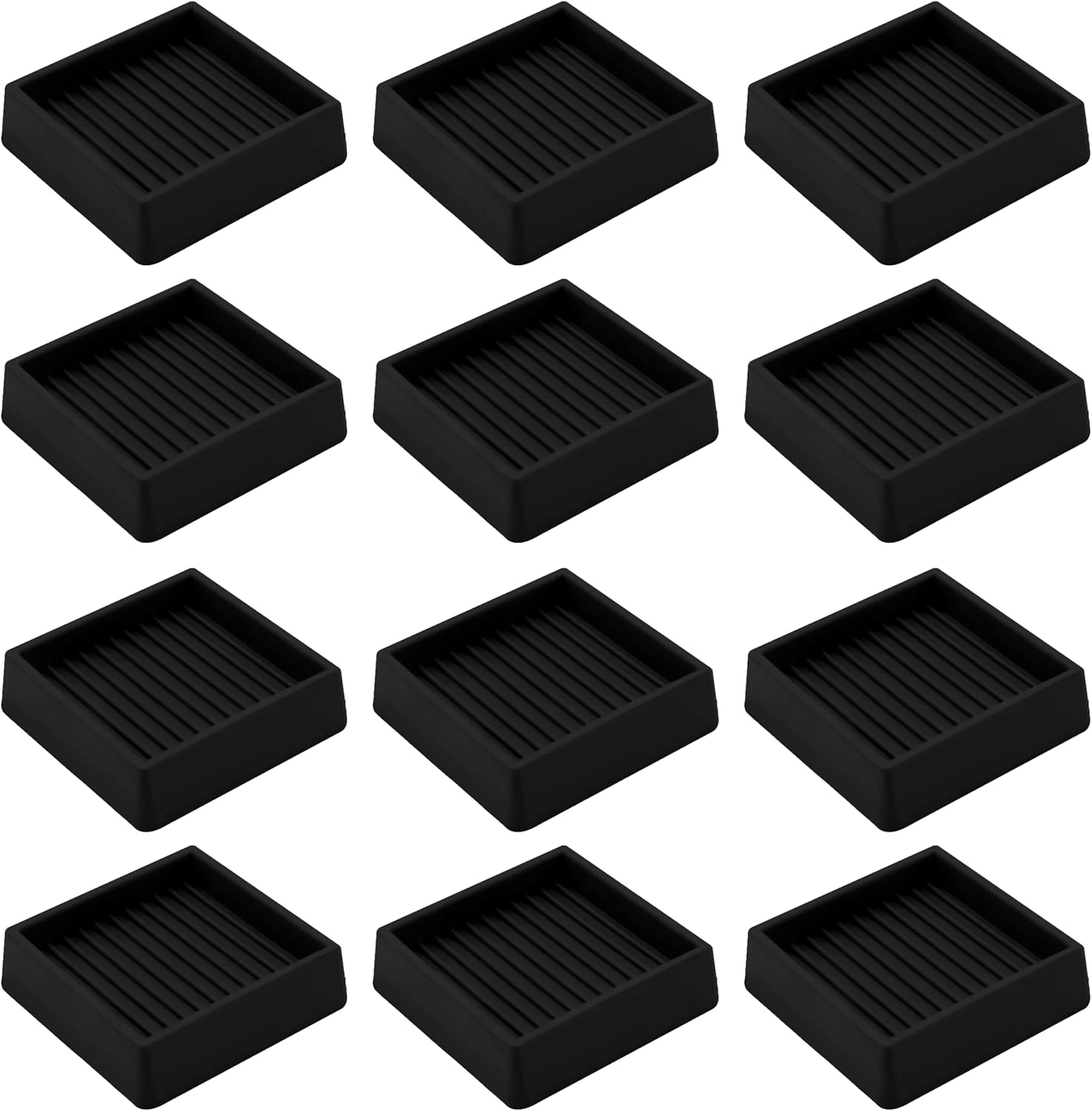 2.5X2.5 Rubber Caster Cups, Non Slip Furniture Pads, Anti-Slip Gripper, Anti Skid Furniture Feet, Anti Slide Floor Protector for Bed Couch Stoppers - 12 Pack Black