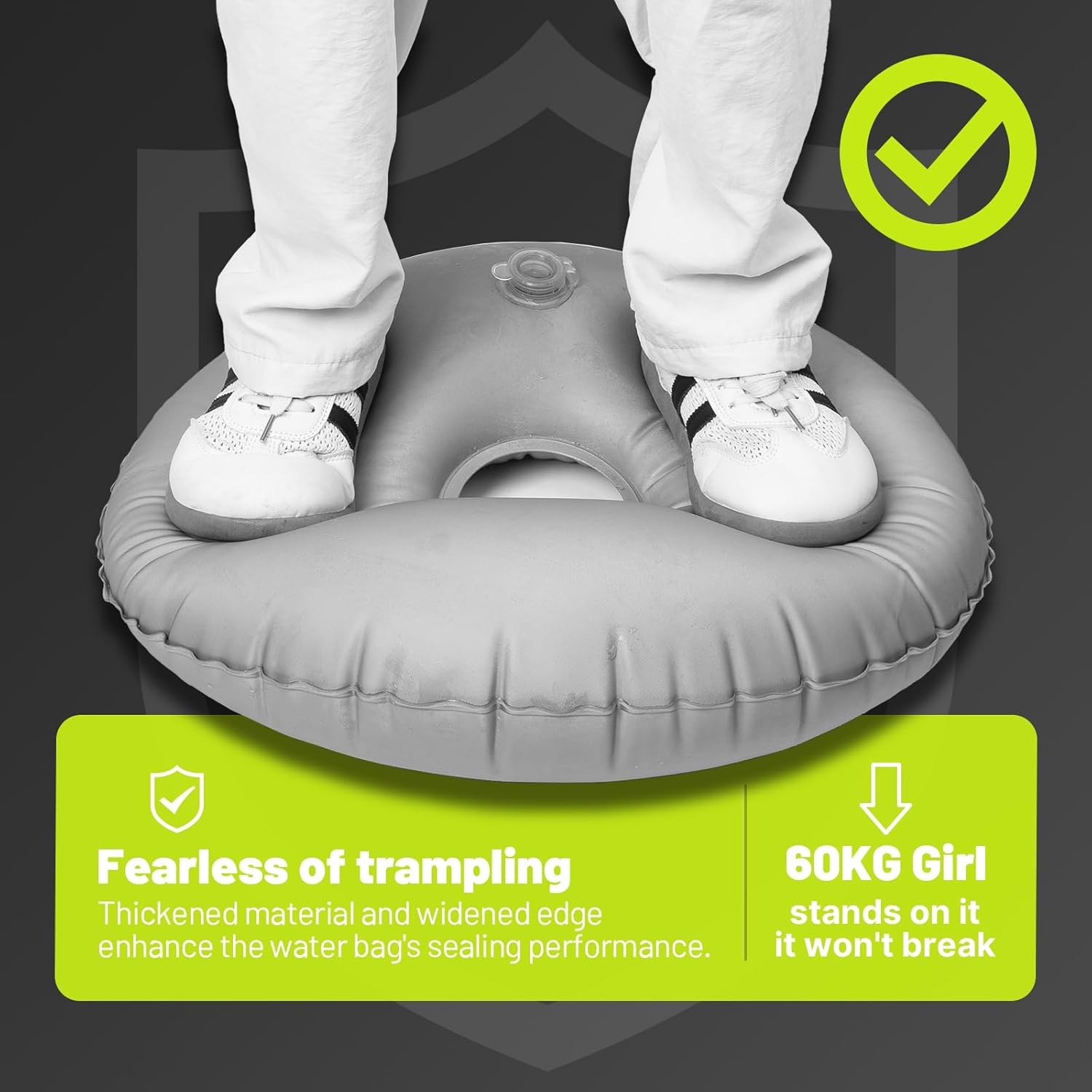 - Notes: Do not throw water bags from heights. Instant impacton water generates strong explosive force, which mayrupture the bags, the water weight bag does not include the stand