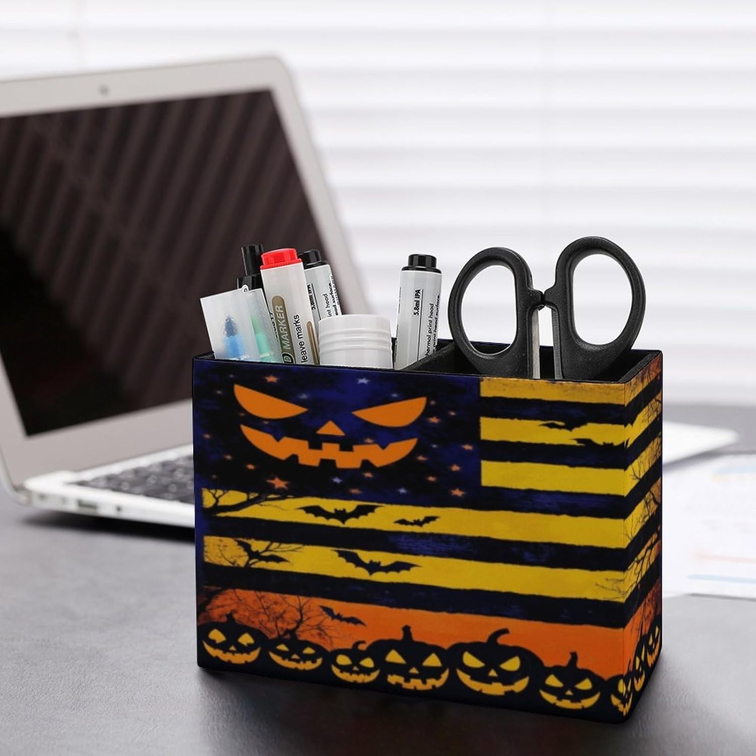 Halloween Flag Lether Pen Holder for Desk Makeup Brush Holder Office Organizer Desk Accessory for School Office