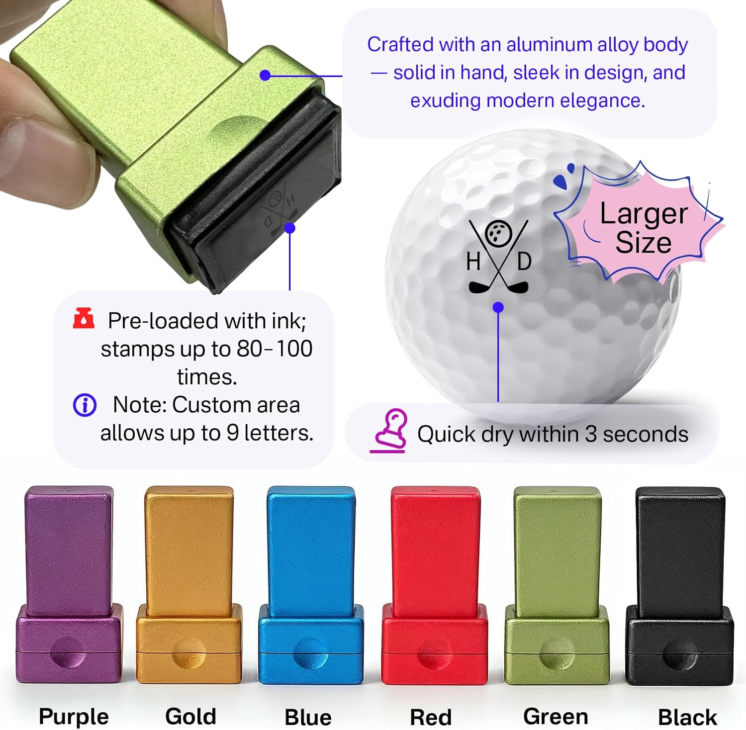 HDSD Custom Golf Ball Stamp - Personalized Monogram Golf Ball Stamper, Quick-Dry Self-Inking Aluminum Alloy, Waterproof Imprint, Ideal Golf Gift for Men Women, Golf Ball Markers